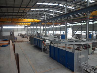 臺車式退火爐鋼 結(jié)構(gòu)主要包括爐殼支撐框架和驅(qū)動設(shè)備支撐框架(平臺鋼結(jié)構(gòu))。考慮到爐殼潛在的熱脹冷縮因素,各段爐殼支撐框架與平臺鋼結(jié)構(gòu)采川相互獨(dú)立結(jié)構(gòu)。各爐段的底 輥室先安裝就位,以自己四角立柱為基準(zhǔn)完成4個基準(zhǔn)立柱焊接;再焊接左右兩個整體端板.而操作側(cè)和傳..